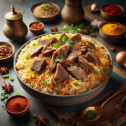 Biryani offers a rich, aromatic experience with its blend of spices such as saffron, cardamom, cloves, and cinnamon. The savory taste is balanced with a mix of spices, ranging from mildly spicy to intensely hot. Tender, marinated meat or vegetables add depth, while the fragrant basmati rice provides a delicate, nutty flavor. The layers of ingredients meld together during slow cooking, creating a harmonious symphony of flavors. Fresh herbs like mint and coriander add brightness, and garnishes like fried onions and nuts enhance the overall texture and taste. Each bite is a flavorful journey, making biryani a beloved dish.